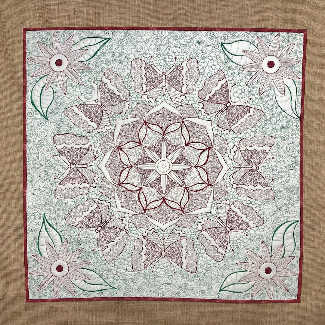 The "Spring" pattern shines through its unique approach to over-stitching. This technique not only enhances the quilt’s texture but also creates a sophisticated roadmap for filling the negative spaces with flowing, organic lines. The dramatic results of over-stitching are truly captivating, giving the quilt a dynamic and textured look that stands out in any setting.